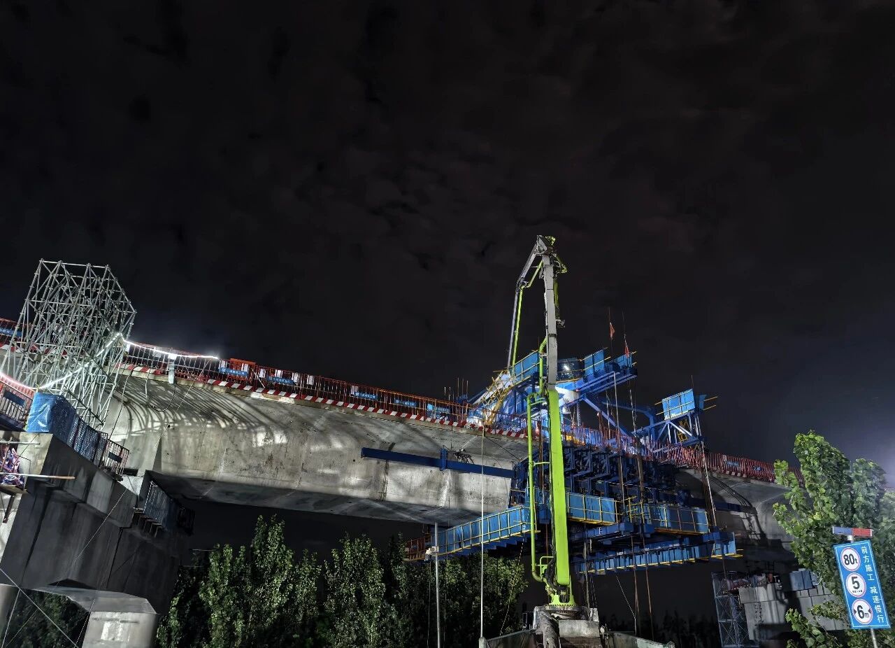 為確保連續(xù)梁施工的精度與機構(gòu)安全,高鐵公司協(xié)同參建單位科學(xué)統(tǒng)籌施工組織、精細化工程管理,同步推進關(guān)鍵技術(shù)攻關(guān)與全周期風(fēng)險防控,聚焦汛期河道水位波動、夜間施工能見度不足等難題,制定防洪應(yīng)急預(yù)案,加密布設(shè)施工照明系統(tǒng),實現(xiàn)“汛期零隱患、夜間施工高效率”的目標,確保安全、質(zhì)量、進度協(xié)同推進。